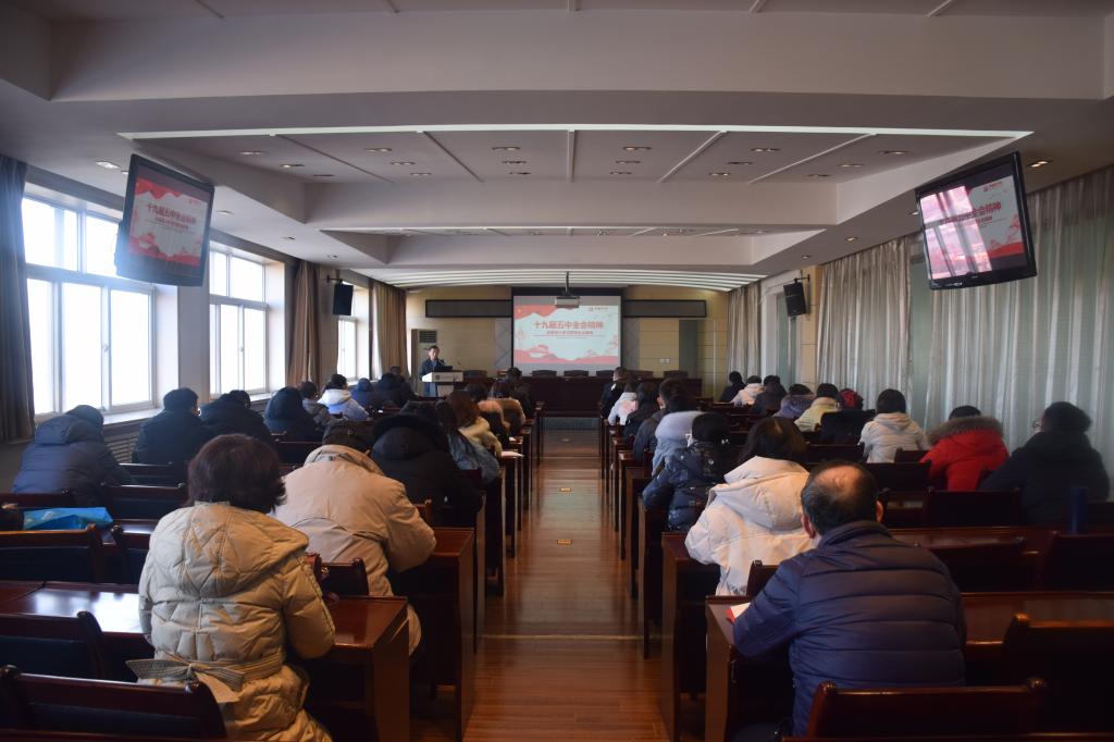 1月13日上午,我院党委副书记贺天柱在崇文楼10楼第五会议室为乐鱼网页版及美育部全体党员教师作党的十九届五中全会精神专题报告。会议由乐鱼网页版党总支书记闫军主持,乐鱼网页版、美育部共计60余人参加了报告会。